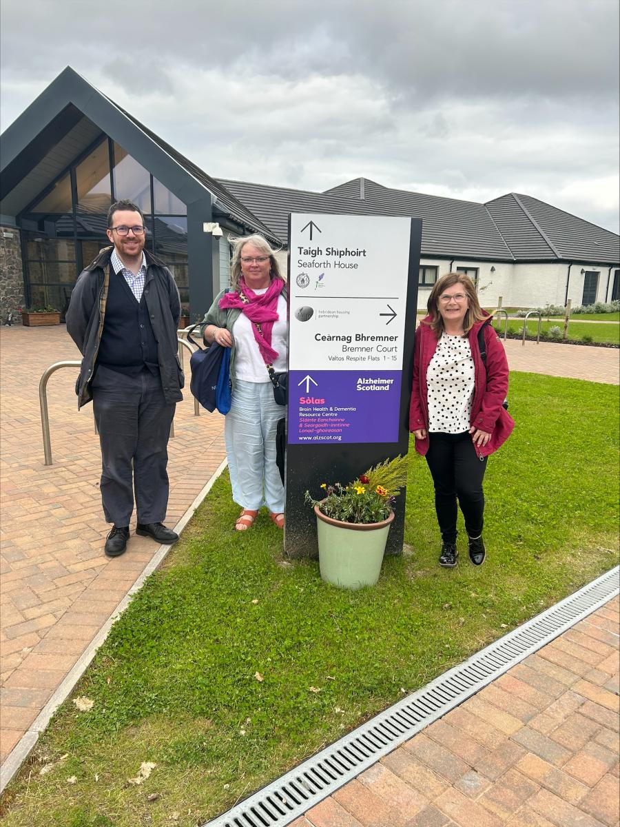 Dr Tom Russ, Dr Emma Law and Jacqueline Kerr outside Stornoway's Alzheimer Scotland Brain Health and Dementia Resource Centre.
